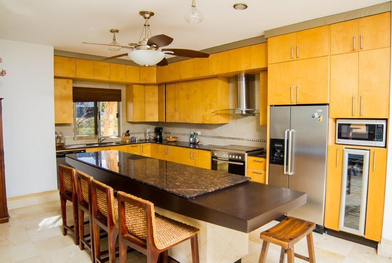 Moderna y espaciosa, esta cocina está completamente equipada con todo lo necesario para preparar deliciosas comidas. Cuenta con un elegante comedor para 8 personas, perfecto para reuniones, junto a una cómoda barra para 4 comensales, ideal para desayunos o convivencias informales. ¡Disfruta de cada momento en un ambiente funcional y sofisticado!